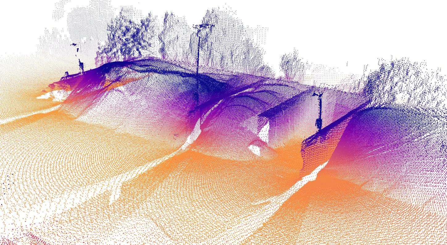 The sensor transforms physical environments into high-density 3D point clouds. This data creates a high-fidelity “digital twin” of the scanned area, enabling precise measurements, change detection, volume analysis, and complete spatial intelligence.